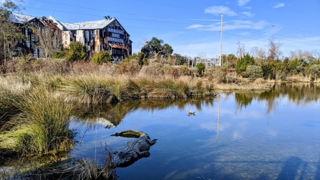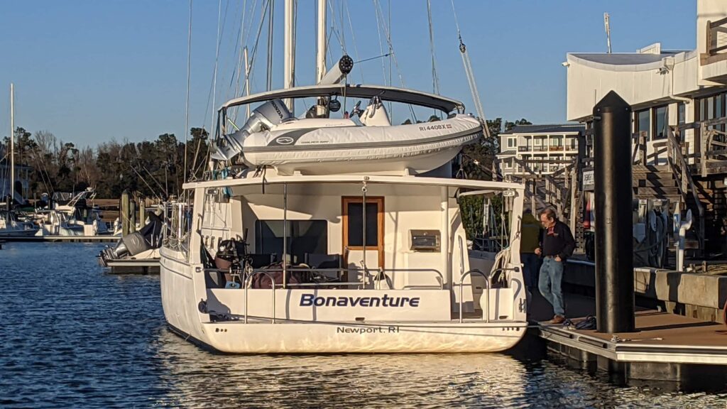 We’re stuck in the marina waiting for the water level to drop below 12′ so our mast will pass safely under the Socastee Bridge.